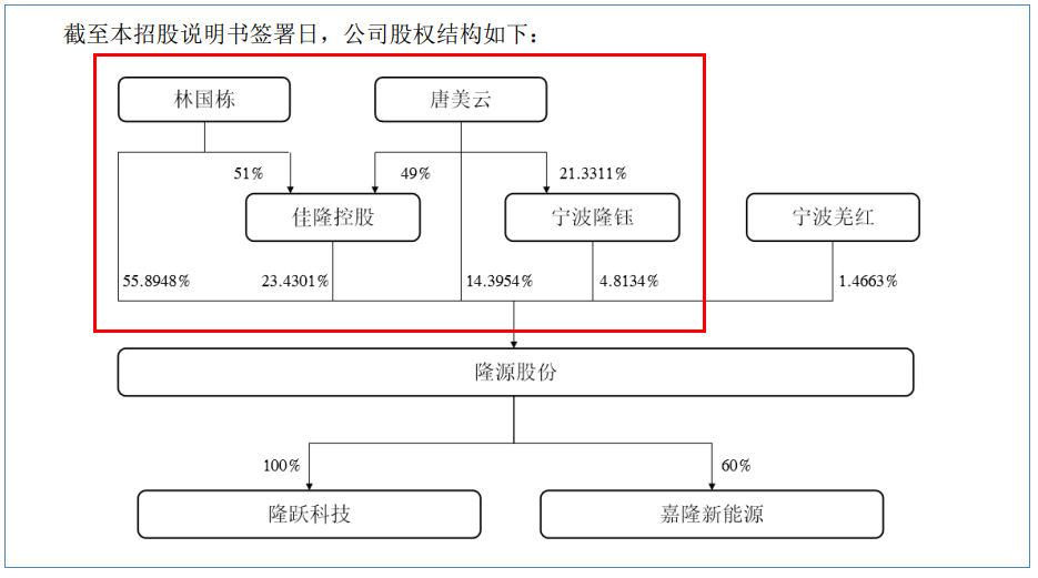 截至招股书签署之日,隆源股份的实际控制人为林国栋和唐美云夫妇,两人直接和间接合计控制公司98.53%的股份。