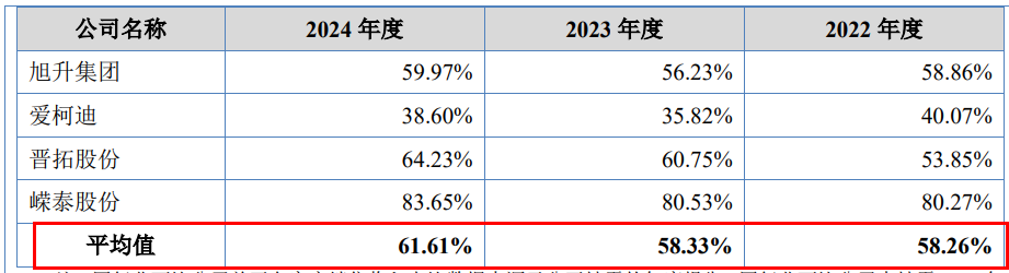 与同行可比公司的平均水平相比,隆源股份的客户集中度普遍偏高。2022年至2024年,同行可比公司客户集中度均值分别58.26%、58.33%和61.61%,均低于隆源股份。另外,只有在2024年时,隆源股份的客户集中度低于嵘泰股份。