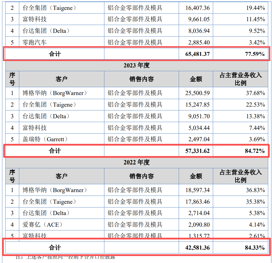 可以看出,隆源股份的前五大客户为公司贡献超七成收入,而大客户博格华纳独占三成。
