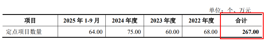 对此,隆源股份表示,客户已定点产品需求支撑募投项目产能消化。数据显示,2022年至2025年9月,公司合计定点项目数据为267个。