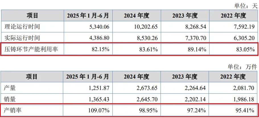 但值得注意的是,以压铸环节的产能利用率替代计算,报告期内公司产能利用率分别为83.05%、89.14%、83.61%和82.15%,产能利用并不充足。
