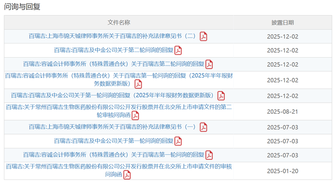 IPO动态显示,百瑞吉此前已经历过北交所两轮问询,并做出了回复。