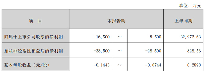 另外,预计2025年度扣非净利润约亏损3.85亿元至2.85亿元,相比于上年同期的盈利828.53万元大幅下降。