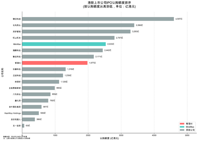 2,在IPO认购金额上,MiniMax为2533亿港元,智谱为1977亿港元,整体上也靠前。