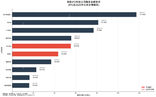 数据可以佐证这点:1,从港股上市科技公司融资金额排名看,智谱、MiniMax此次分别融到资金43.48亿、55.40亿港元,处在中间偏上位置。