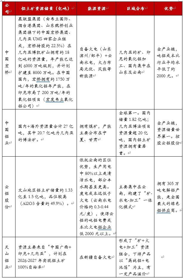 ●从资源优势来看,拥有铝矿、能源配套的企业在涨价预期下,业绩更有弹性。