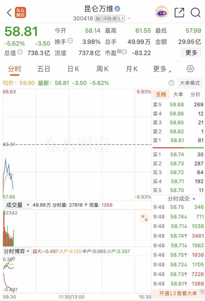 二级市场上,1月16日开盘,昆仑万维股价飘绿,截至发稿跌超5%。