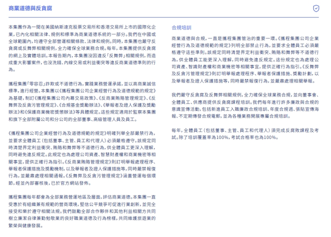 从携程历年的ESG报告来看,公司在合规、商业道德与消费者权益保护层面并非“完全缺席”。反垄断合规、信息安全、投诉处理机制,均被写入报告框架,治理结构看似完备。但问题恰恰在于:文本中的“合规意识”,并未有效转化为业务运行中的“边界感”。
