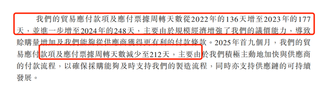 营运资金效率也有所下滑。埃斯顿存货周转天数从2022年的138天增至2024年的194天,2025年前九个月虽回落至158天,资金占用压力仍处高位。同期,贸易应付款项及应付票据周转天数降至212天,埃斯顿解释为“主动加快对供应商付款,以支持制造流程与供应链可持续发展”。