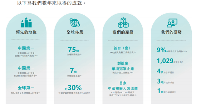 另据弗若斯特沙利文数据,公司2024年收入位列全球工业机器人厂商第六;2025年上半年,其国内市场出货量首次超越外资品牌,连续多年保持本土第一。公司业务主要覆盖汽车、工程机械、锂电等制造领域,提供全产业链解决方案。