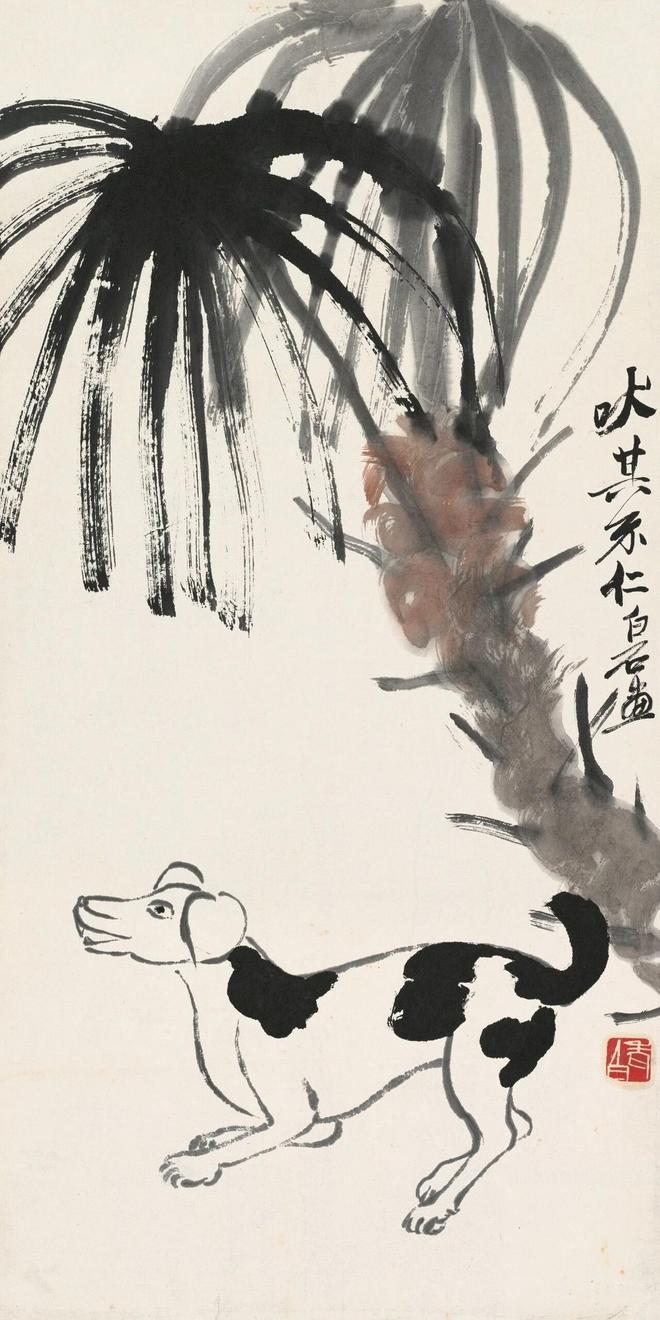 齐白石给《十二属图》中这张狗画起名为《吠其不仁》