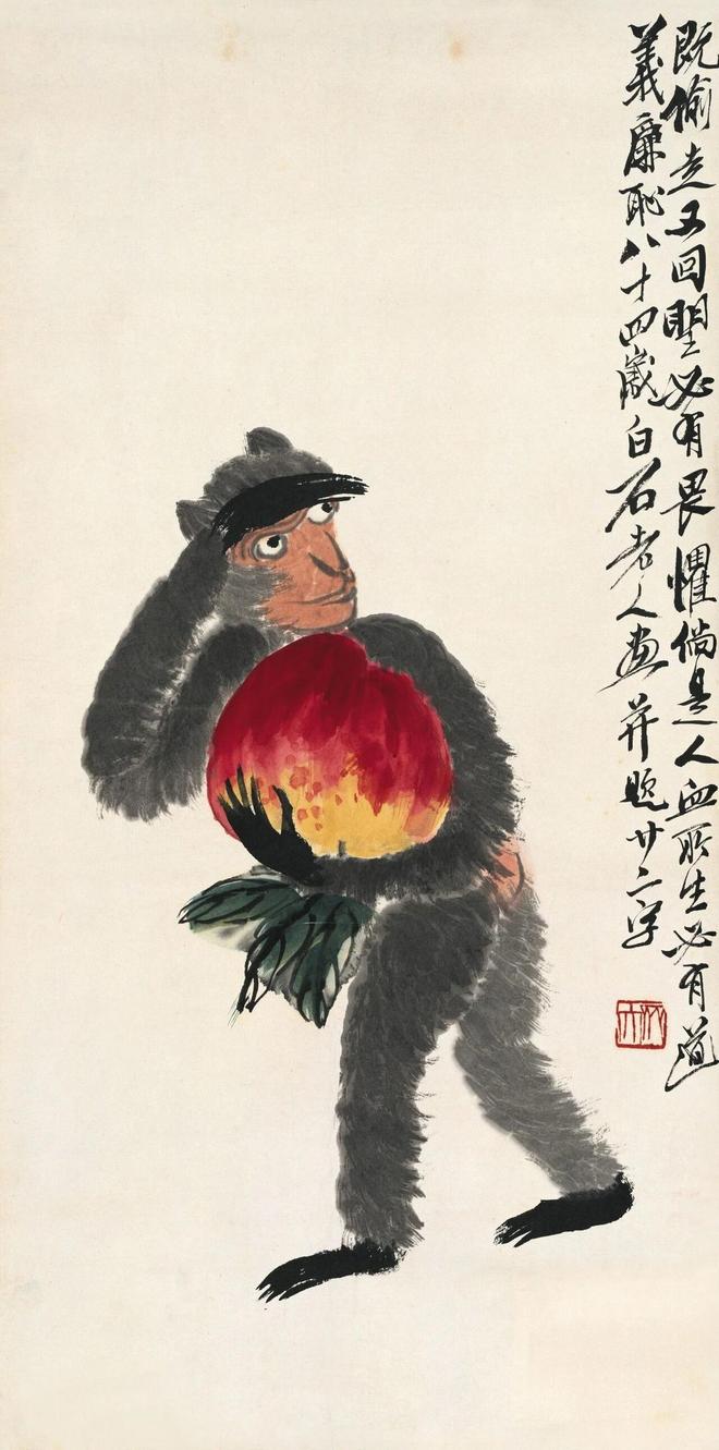 《十二属图》中这幅《桃猴》也十分有趣