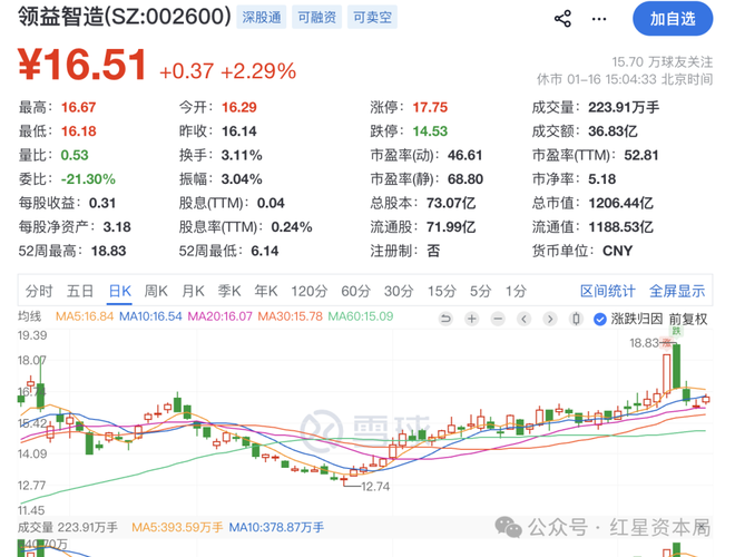 截至16日收盘,领益智造报16.51元/股