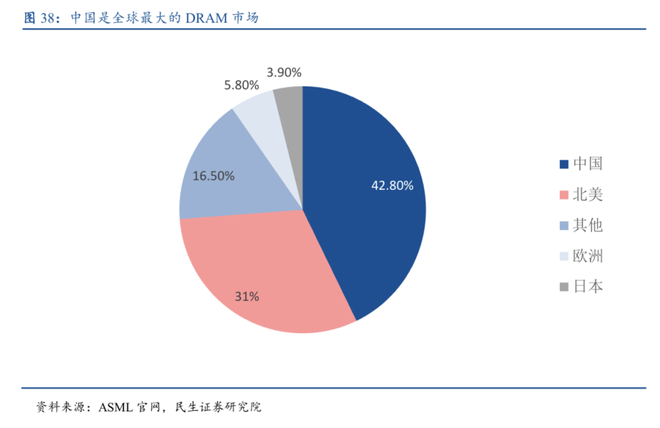 而中国是全球最大的DRAM市场,占全球比例约为 43%,但几乎完全依赖进口,自制率远低于半导体全行业水平。