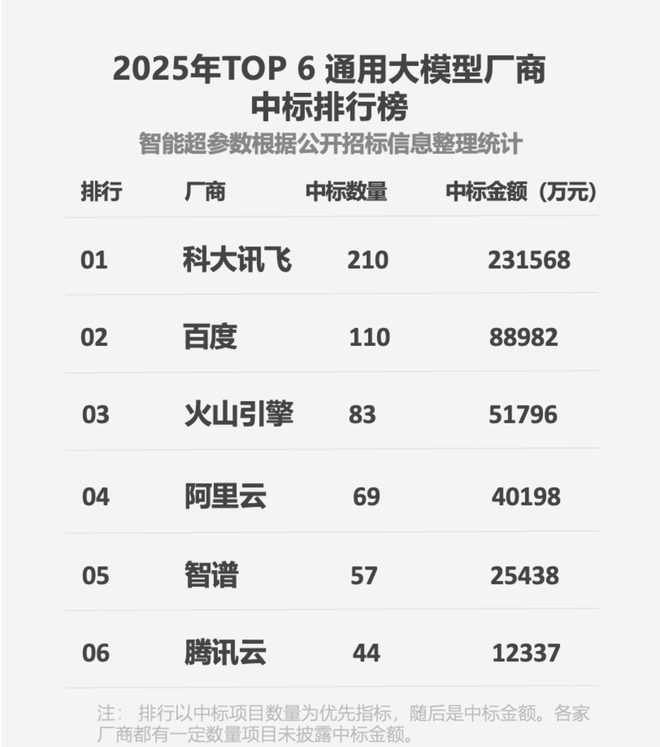 在部分媒体统计的通用大模型厂商中标榜单中,火山引擎目前仍处在追赶位置。尽管榜单本身存在统计口径与模型视角的局限,但至少传递出一个现实信号:向B端要增长,从来不是一件轻松的事。