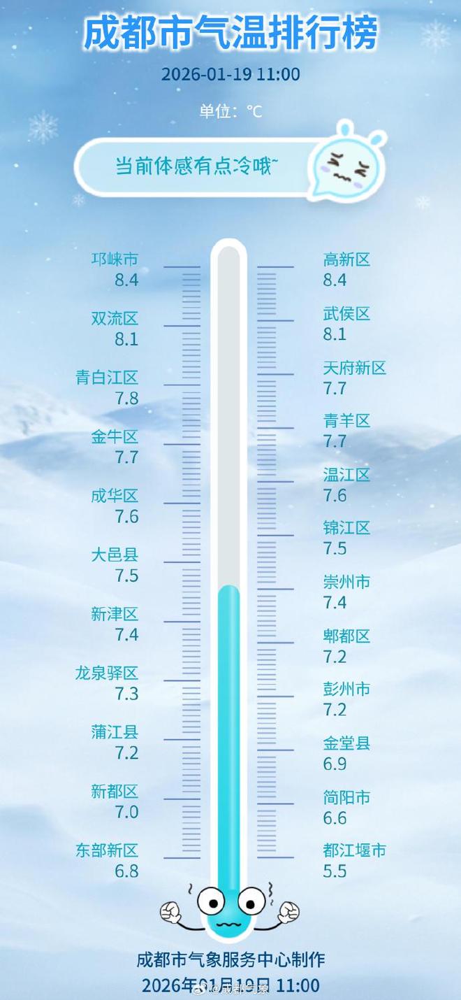 午后,冷空气并未停歇,将持续补充南下。成都市气象台预计,19日全天的最高气温也只能艰难爬升至10℃左右,相较于前几天18℃的“高点”,降幅巨大。这种“冷上加冷”的体感,让不少市民直呼仿佛一夜入“深冬”。