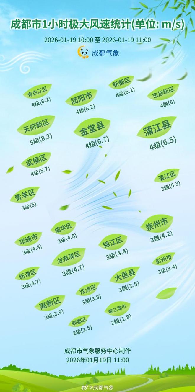 19日上午,在强冷空气的主宰下,成都完全褪去了前几日的温和面貌。清晨,天空阴沉,云层厚重。据成都市气象台监测,上午11时,全市气温普遍仅在7.5℃上下徘徊。降温伴随着3至5级、东部局部6级以上的偏北风,共同制造出穿透衣物的“风寒效应”。