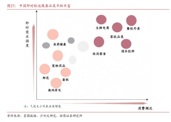 例如浙商证券就认为,即时零售的大发展反哺了第三方即配平台。因为消费者一旦养成习惯,即时零售品类就会从外卖向全品类拓展,消费边界拓宽后,就需要更多元的服务能力做支撑。