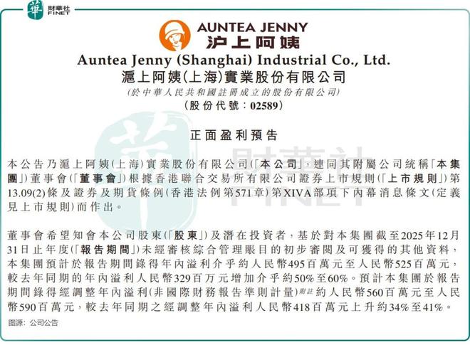 根据沪上阿姨发布的业绩预告,公司预计2025年度实现净利润4.95亿元(单位:人民币,下同)至5.25亿元,同比增长50%至60%,全年预计增速较上半年已实现的增速(20.9%)大幅提升,显示出强劲的增长势头。